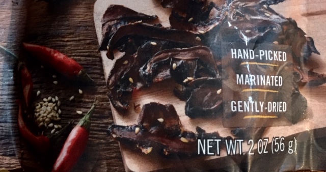 I remember seeing it in the store and thinking, “What a great idea!” In addition to lower carbs, we’ve given up meat. But I do crave jerky every once in a while. Who doesn’t love gnawing on a salty hunk of dried-out beef for a half-hour?
